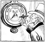 In the aftermath of the Second World War, Germany was split into four sectors, to be occupied by France, Britain, the USA and the Soviet Union. Berlin, although in the Soviet Sector, was itself similarly split. In June 1948, the Soviets cut off all land transportation links to the city, causing a shortage of food and goods. The West's answer to this was the Berlin Airlift, an operation to move goods and foodstuff to Berlin by air, thus bypassing the blockade. The operation continued until September 1949, four months after the Soviets had lifted the blockade, in order to replenish the city's reserves. The following cartoons date from the time when the airlift was underway.