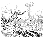 Cartoon referring to the propaganda war over living standards between east and west.